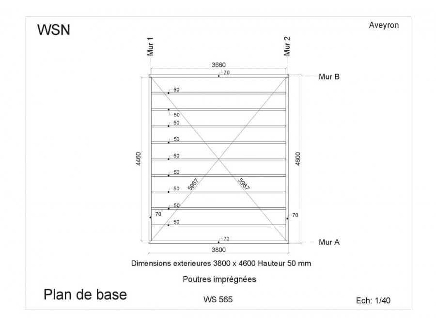 Bungalow en bois AVEYRON 20m² Dim. (5000X4000-70mm)