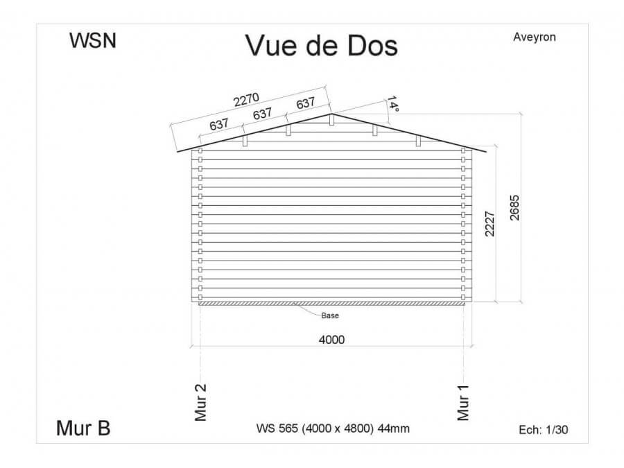 Abri en bois AVEYRON 18,9 m² Dim. (5400X3500-44mm)