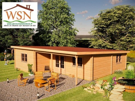 Ce magnifique Chalet a une superficie de 90m². Avec son auvent couvert, vous serez à l'abri pour profiter de votre extérieur.