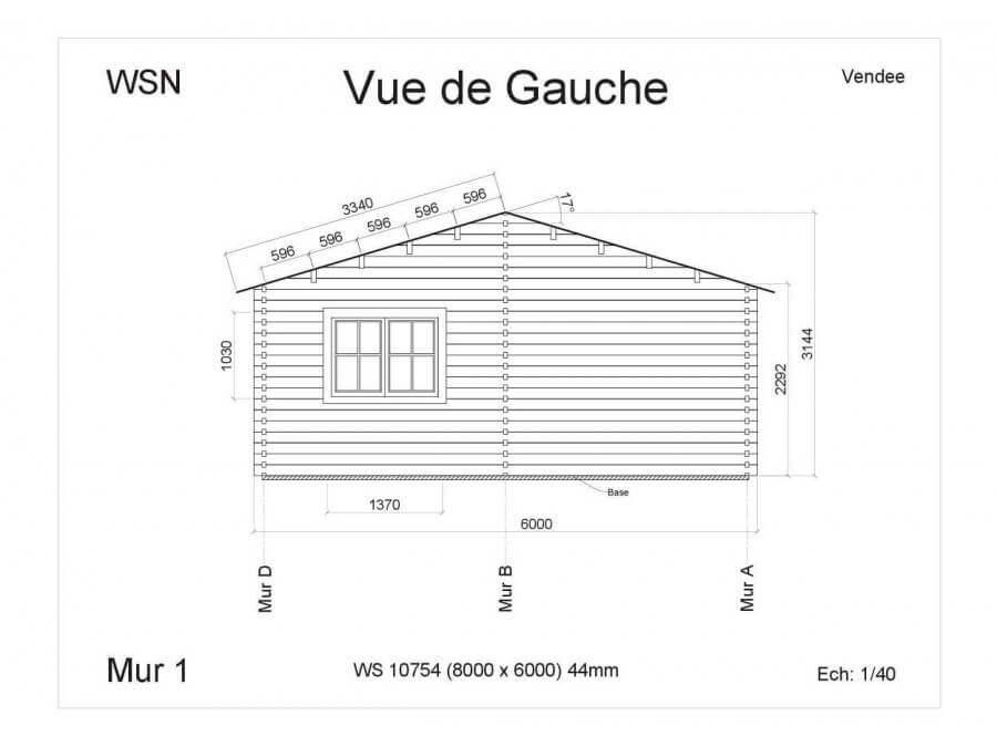 Chalet en bois VENDEE 60m² Dim. (10000x6000-44mm)