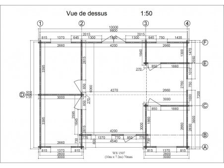 Chalet en bois HERAULT 72m² Dim. (10000x7200-70mm)
