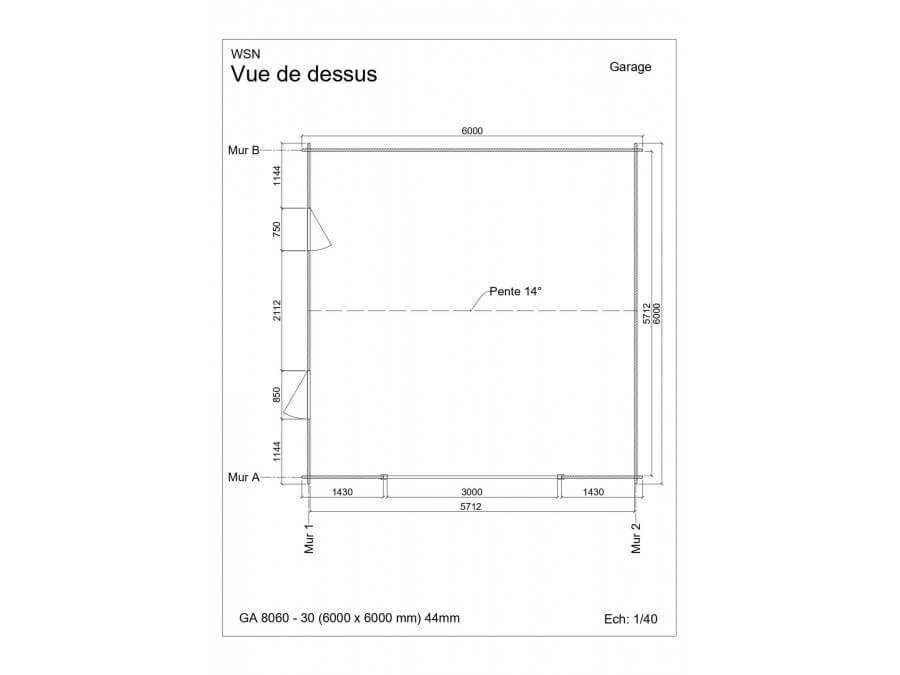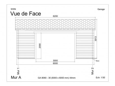 Ce garage en bois de 36m² est fabriqué en madriers d’épicéa de 44 mm d'épaisseur est vendu sans la porte de garage, vous laissant ainsi monter le type de porte de votre choix, sectionnelle ou à battant. Largeur de passage 3 mètres.